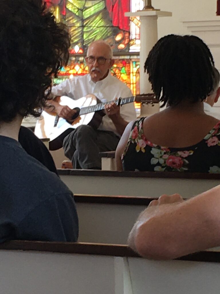 An evening with poet Lester Hirsch, offering thoughtful verse in the chapel setting.