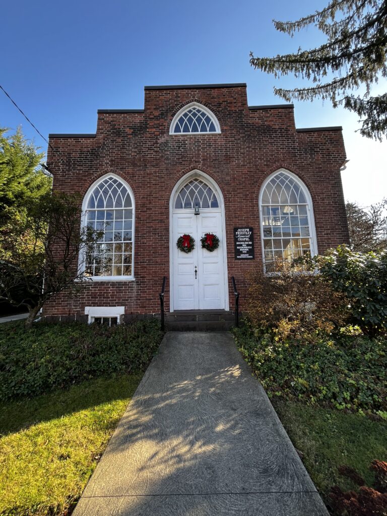 The Chapel was constructed by descendants of Joseph Priestley and members of a Unitarian congregation.